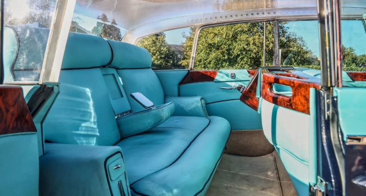 除了标志性的透明车顶,这台银魅的内饰同样彰显定制格调:胡桃木装饰的内饰与仪表盘质感十足,后排乘客舱专门配备了速度表,还率先搭载了空调、电动车窗等当时极为罕见的配置,甚至曾装有电视机(现已遗失)。