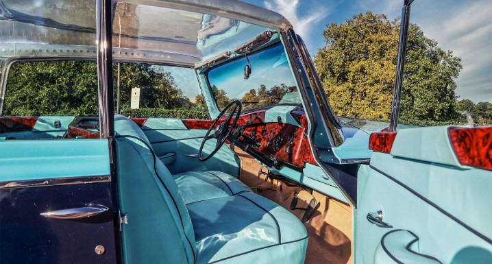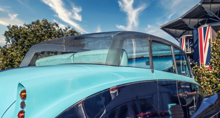 其最令人惊叹的设计,便是那全透明的有机玻璃车顶——努巴尔计划在法国蔚蓝海岸使用这台车,他认为唯有透明车顶,才能让阳光洒在精心打理的胡须上,成为众人瞩目的焦点。